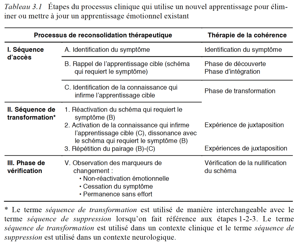 Voici un court résumé du PRT et de sa correspondance avec la Thérapie de la cohérence (Ecker et al., 2012)